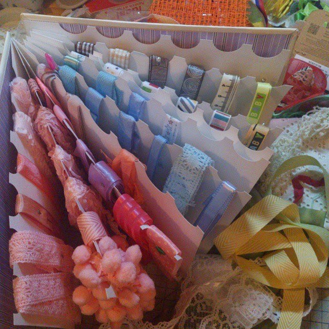 Следующим этапом стало приведение в порядок ленточек и бумаги. Вот, например, мои ленточки)