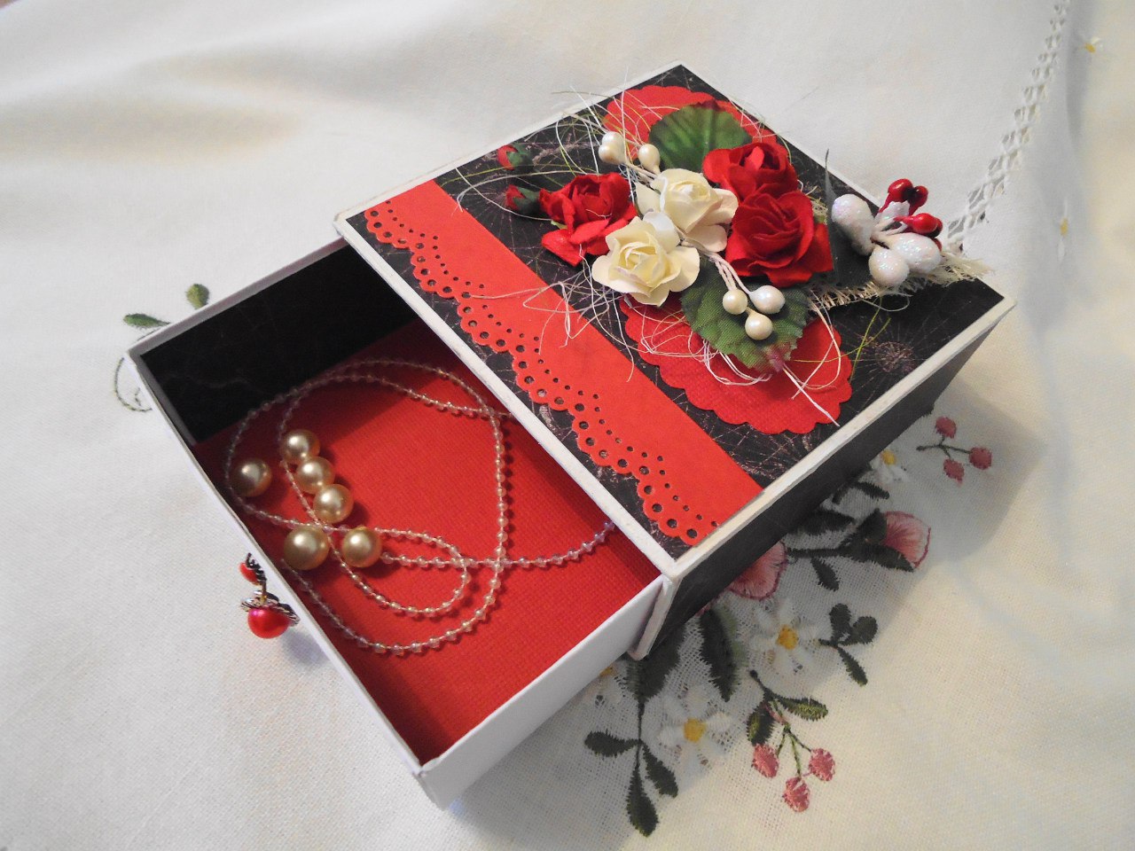 Моя коробочка шоколадно-розовая, внутри ящичек сделала с разделителями для милых сердцу мелочей. Пока там живут вязанные бабушкой цветочки, шебби-ленты... Крышечка шкатулки украшена цветами ручной работы (сестричка старалась!). Надеюсь, мне удалось передать то мечтательно-романтичное настроение, которое было у меня при изготовлении этого изделия))))) Внутренний ящичек решила сделать тоже из пивного картона. Так показалось надежнее. Внутри окрасила белым акрилом, дно оклеивала бумагой